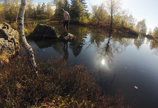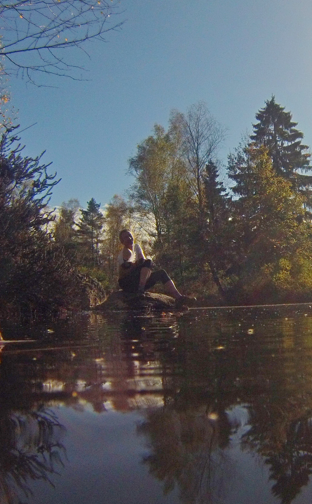 Midi casse croûte au bord d'un magnifique étang en plein soleil. On a fait qu'un quinzaine de km sur les 56 prévus ???