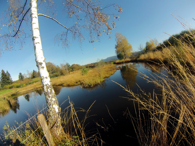 Tout se passe bien on continu à serpenter entre les étangs, au point le plus éloigné de Mélisey un panneau mal planté nous envois dans la mauvaise direction ainsi qu'un couple de marcheur.Finalement on trouve le bon chemin en voyant le panneau blanc du balisage cloué sur un tronc de boulot qui est aussi blanc!