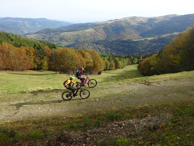 ce sera donc une descente plus directe et avec plus de flow en direction de Moosch. Un vrai régal ! Après un bout de piste cyclable, on remonte avec un peu de poussage sur un sentoer sympathique pour reprendre un peu plus haut la descente sur Bitschwiller.
