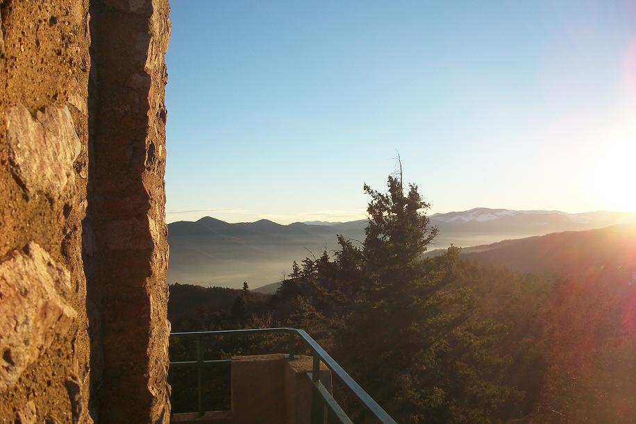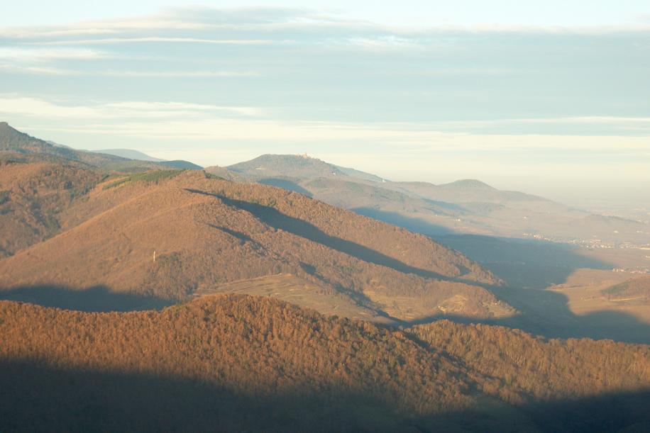 Vue du Galtz sur le château du Haut Koenisgsbourg au loin