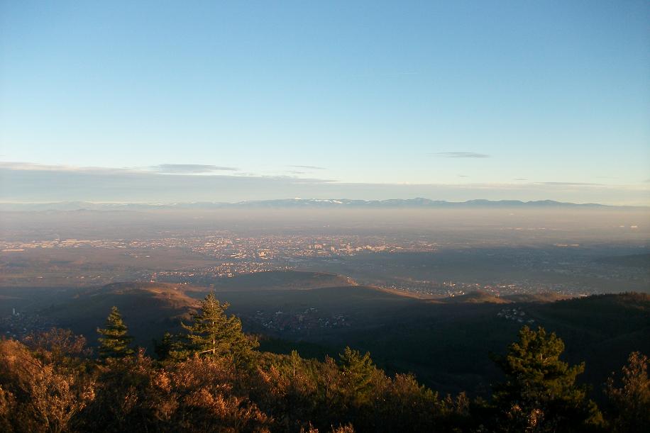 Vue du Galtz sur la plaine d' Alsace, Colmar et la forêt noir