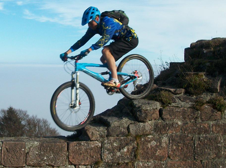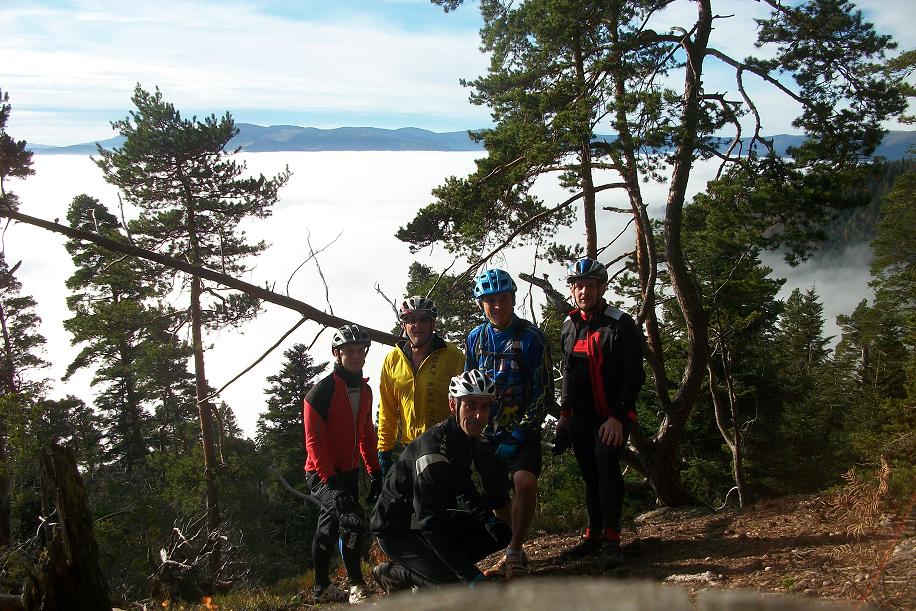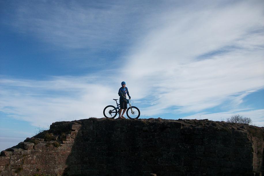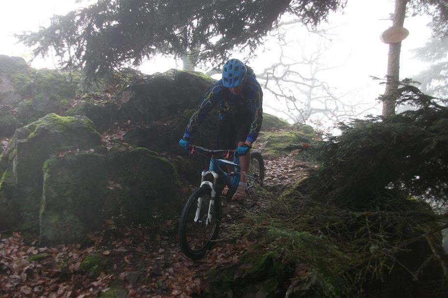 Pierrehins, Denis, Fredzy et Jérome, l'invité surprise ont répondu présent malgré le froid humide des premières heures. Direct on a débuté l'ascension de Zim au grand Honnack, tantôt par du sentier, tantôt par du chemin, jusqu'à sortir de cette brume tenace au niveau de la Croix de Whir. On a tourné un peu la haut avant de descendre sur le petit Honnach et proffité de la vue du château et de ces ruines. Superbe séances de free ride de la part de Pierrehins ou l'on a même eu droit à une belle cabriole sans gravité heureusement! Un fait marquant également, une horde de sangliers et marcassins qui nous on déboulé à 2m devant nous :| ....