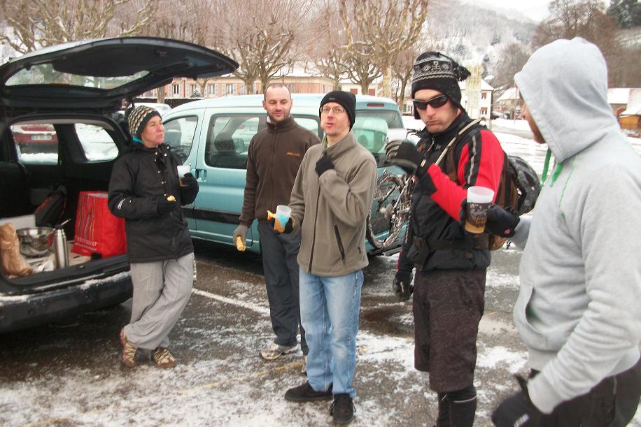 Bonne sortie hivernale cette après midi avec un bon groupe plus motivé que jamais pour tater de la neige toute fraiche :ghee: . 3h30 de rando pour 16 bornes guidé pas Seb la rustine et Chriscross, on avait du mal à le croire mais au final on c'est bien éclaté et on a même transpiré 8/ . Mention spéciale à 2fré, la seule fille du groupe qui est toujours partante pour l'aventure off road et un GRAND merci pour son excellent vin blanc chaud, ou plutôt tiède.... :vivemoi: , désolé pour la panne de gaz :mrgreen: . Merci également à Niap pour les manalas et Mikaden pour la wourcht, et aussi aux absents pour nous avoir laissé leurs parts :langue2: . A tous à l'année prochaine pour de nouvelles aventures :hello: