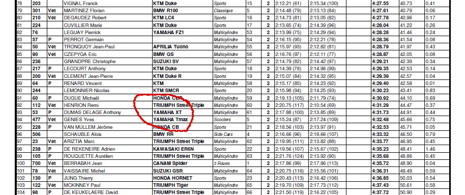 Bref la 1ere journee en course de cote avec sa XT il se classe devant des KTM DUKE et surtout des 1000 sportives Kawas et MV etc , il torche 80 mobs bien plus puissantes, chercher l'erreur