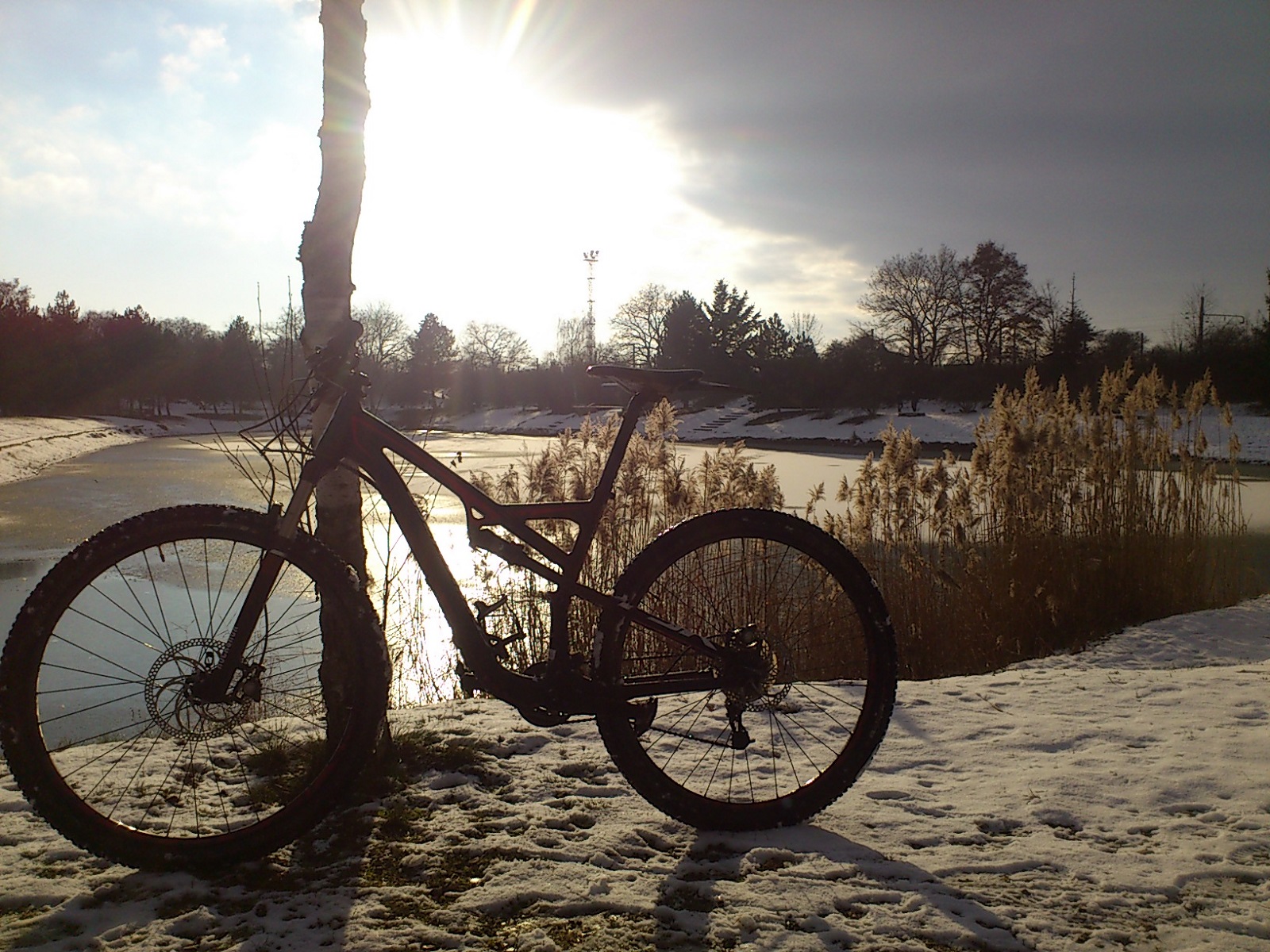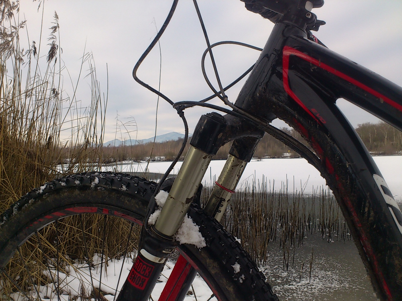 le vélo tient tout seul, planté dans la neige :ghee: