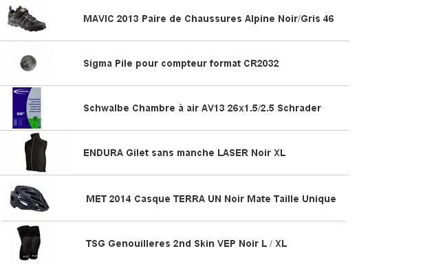 Pour ma part des genouillères car je me suis bien crouter avec Seb un pneu en 2,1 de nouvelles pédales a plateforme shimano SPD Image