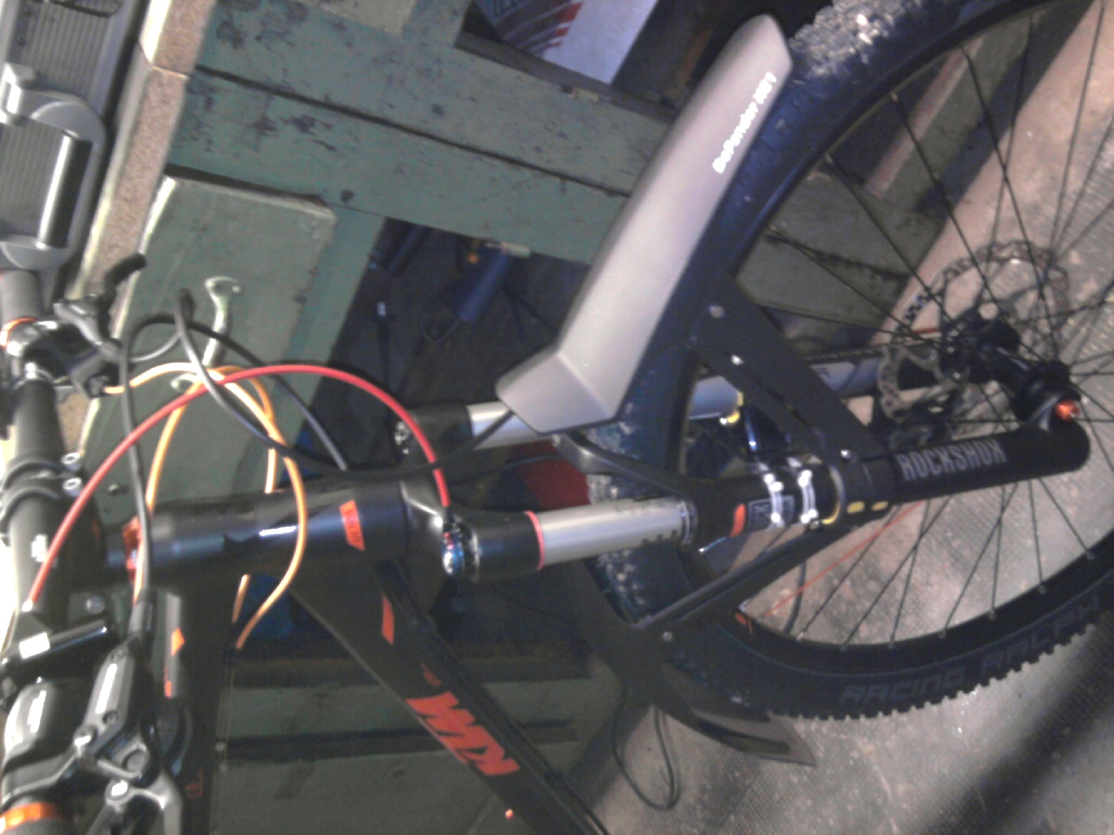 Aprem' roulage avec le VCA Gueb (club qui à organiser le Bluegrass à Gueb), prise de départ sur l'une des spéciales pour le fun. Sur un appel/contre appel avant une épingle sèche, je place le dérailleur contre un pierre... Ok, apparemment ça tiens ; changement de vitesse : crac