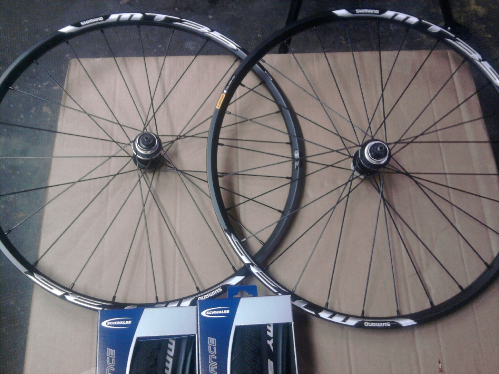 Deux roues MT 35 Shimano en 26 et deux Schwalbalas Sammy Slick en 2.10, pour mon mulet, vélotaf, street-bike, explose-mamie...