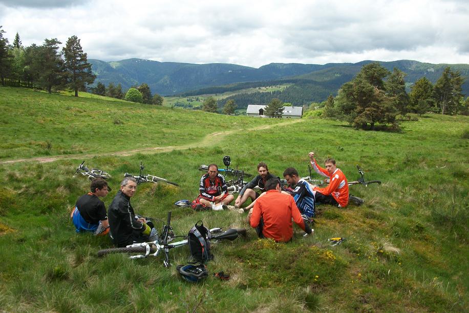 Il faisait un peu frisquet le matin, mais après la tournée générale de Joe qui fêtait ses 25 ans :hehe: à l'auberge, on est reparti motivé pour faire... 300 mètres et manger avec vue sur les crêtes (Honneck etc...) :]