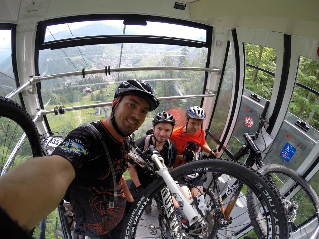 Direction le télécabine pour monter au point de départ (une remontée en télésiège est prévue à mi-parcours, d’où le delta D+/D-).