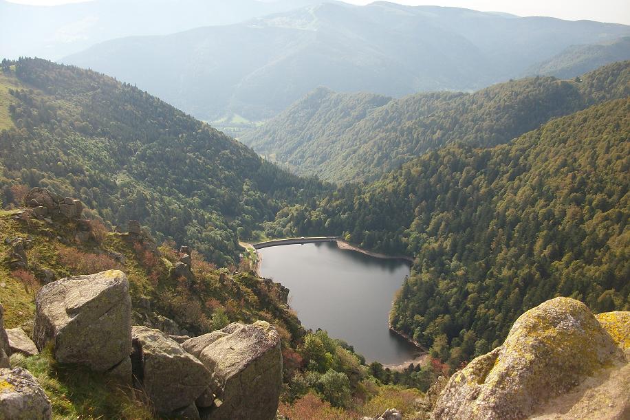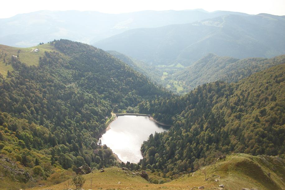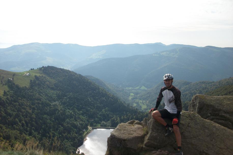 Départ à la fraîche place de l'église pour une dure montée par le rond bleu jusqu'à la station du Gaschney. De la je prend la direction de la ferme auberge du Schiessroth puis le gr5 jusqu'au sommet du Honneck ou entre temps j'approche de très prêt tout un troupeau de chamois :) .Du Honneck je prend les Crêtes par le superbe sentier des névés ou la vue est bien plus dégagé qu'il y a 10 jours lors de la rando avec les amis Franc-Comtois. Je prend ensuite la direction du lac d' Altenweiher par la croix jaune ou je casse la croute avant de faire le tour du lac par un chouette sentier. Je prend ensuite au niveau du barrage un sentier bien technique qui descend sur Mittlach.Un des sentiers emprunté pour le trail des Marcaires. Au niveau d'une chapelle avant Mittlach je prend une piste qui monte à nouveau en direction des Crêtes avant de prendre un sentier croix jaune jusqu'au lieu dit "Kerbholtz". J'hésite à prendre un sentier qui part sur le Frankental réputé difficile et m'engage sur celui qui part sur le Lac du Fischbotlé par la croix bleu. C'était la partie la plus costaud du circuit :| , j'ai du porter le vélo une bonne heure sur un sentier hyper accidenté avant de terminer par une magnifique descente en épingle et bien technique aussi :] . Je décida ensuite de finir par le sentier dans les pierriers de la vallée de la Wormsa, jamais je n'aurai pensé un jour y passé à vtt mais aujourd'hui c'était du Vrai vélo de montagne et j'étais plus motivé que jamais pour ce genre d'expérience.
