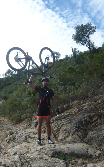 Un single track particulièrement technique m’impose un portage du VTT… mais d’un doigt s’il vous plait !!! Punaise, mais qu’est-ce qu’il est léger ce VTT ! L’après-midi, quelques heures de quartier libre pour découvrir les nouveautés des autres exposants et ce que propose la concurrence.