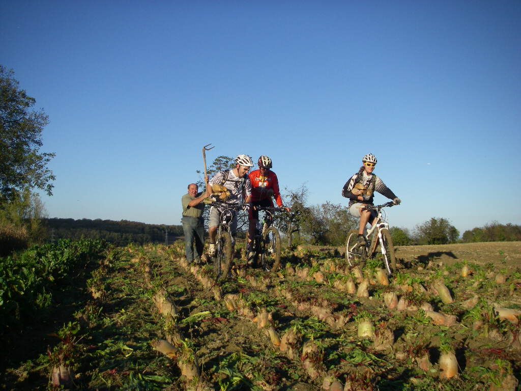 Ca commence par une crevaison au point de RDV pour Denis et bien sûr pas de chambre 29" on monte une 26" (qui finalement à tenue toute la balade) et on passe par chez lui pour prendre une chambre 29 de secours.