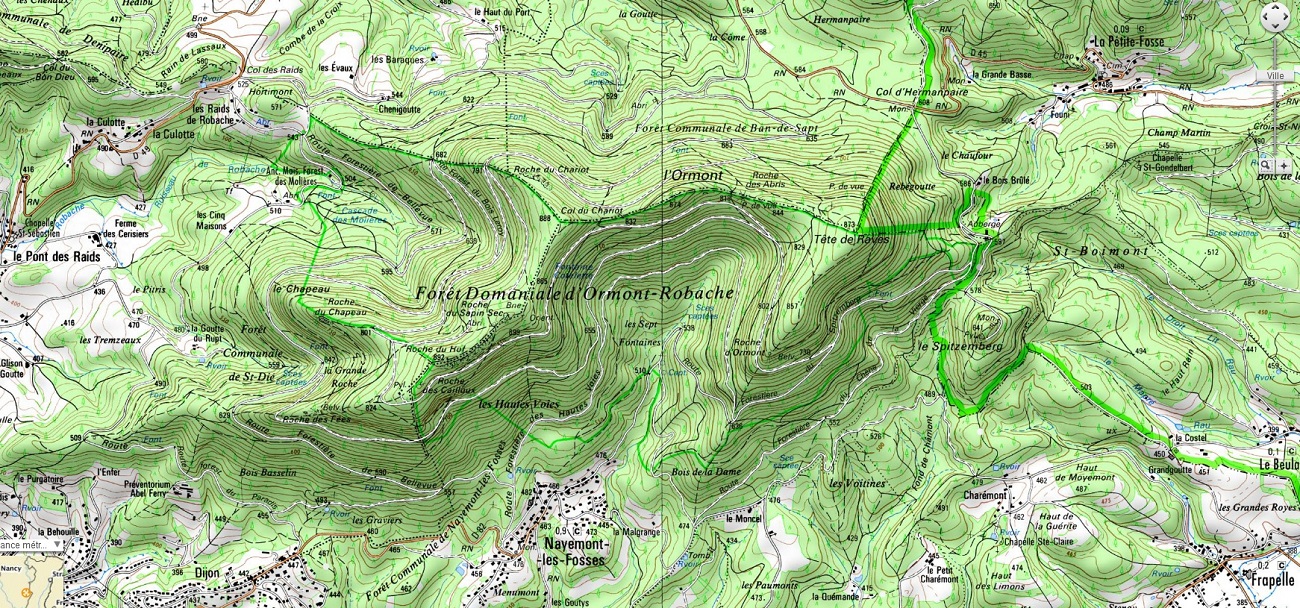 On décide donc avec mon beauf de sortir les VTT, et comme en ce moment dans le sundgau et les contreforts du Jura ça colle et c'est gras, on profite de notre présence en Haute-Meurthe pour goûter au grès Déodatien (Saint-Dié).