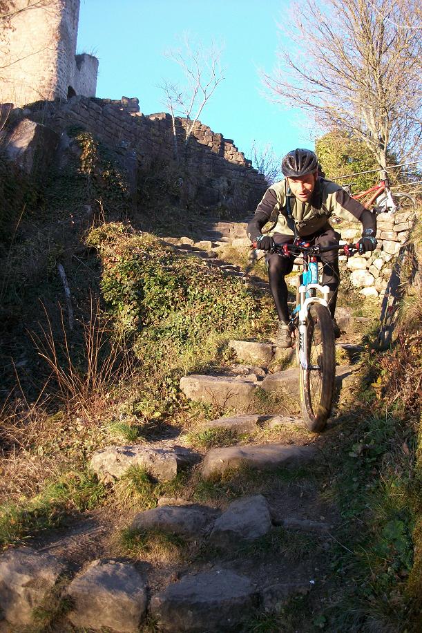 On a pédalé pas loin de 4h en partant de Rouffach pour rejoindre les 3 châteaux et revenir par le sentier des carrières que je prenais pour la première fois :ghee: . Mon compteur affiché 44 bornes tout comme mes cuisses et mon postérieur :(